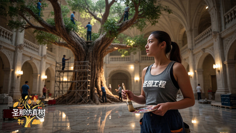 景观包括:仿真假山大门、假山景观、动物雕塑等